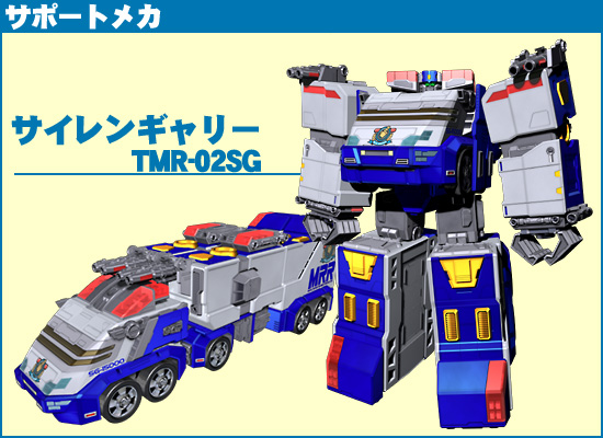 ブルーサイレンズを乗せ、災害現場に急行する大型トランスポーター。変型してロボットになり、ポリスやジャイロの支援をする。