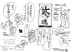 結局(けっきょく)、最後(さいご)まで使(つか)われることのなかった「武ちゃ魂(むちゃだましい)」の旗のアイディア。本編(ほんぺん)の武者頑駄無(ムシャガンダム)たちは、「武(ぶ)」の文字(もじ)をとり入(い)れた旗をかざし、それと揃(そろ)いのステッカーを身(み)につけて、堕悪闇軍団(ダークやみぐんだん)との最終決戦(さいしゅうけっせん)に臨(のぞ)んでいました。もしかしたら、あの精悍(せいかん)な場面(ばめん)の中(なか)に、「武ちゃ魂」の旗が次々(つぎつぎ)に掲(かか)げられるなんて展開(てんかい)もあったのかと思うと……。う〜ん、それはそれで見たかったかも!?