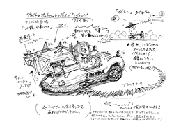 ブライト専用車(せんようしゃ)の詳細(しょうさい)が明(あき)らかに! 後(うし)ろについていたコンテナが、凶暴(きょうぼう)な鎧(よろい)を封印(ふういん)するためのものだったとは驚(おどろき)きです。ブライトは、この車(くるま)で鎧(よろい)を事件現場(じけんげんば)に運(はこ)び、斧雷丸(ブライマル)に変身(へんしん)していたのですね。ブライトでさえ、制御(せいぎょ)するのが困難(こんなん)な鎧を閉(と)じこめるその性能(せいのう)は「マッドマックス」に登場(とうじょう)する車・インターセプターを超(こ)えた!?