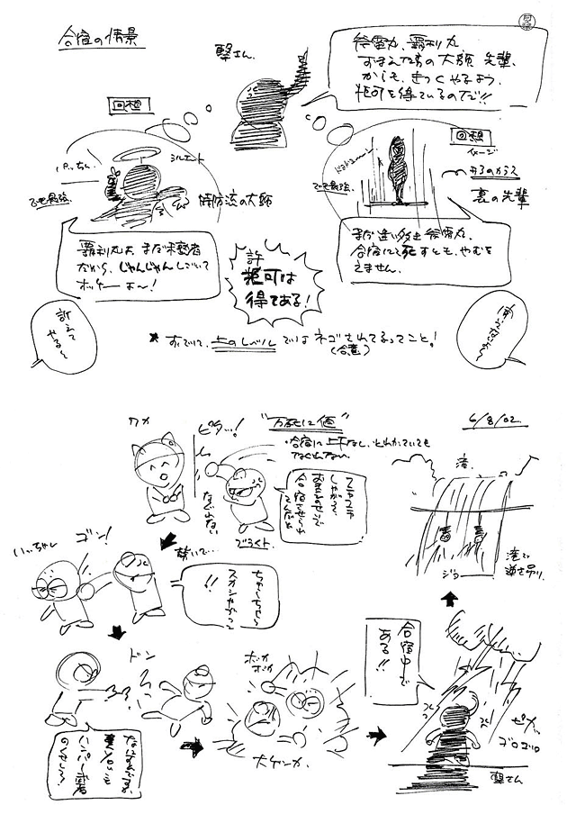 裏設定(うらせってい)ではブライト、ハッちゃんの合宿参加(がっしゅくさんか)に、上(うえ)の方(かた)たち(時防衆(じぼうしゅう)の大師(たいし)、裏頑駄無流(うらガンダムりゅう)の先輩(せんぱい))の許可(きょか)が出(で)ていたのですね。合宿(がっしゅく)自体(じたい)の内容(ないよう)は、水汲(みずく)み、崖登(がけのぼ)り、水中脱出(すいちゅうだっしゅつ)、etc、そして命(いのち)をかけたバトルと、まさに地獄(じごく)の「合宿(がっしゅく)」でしたが、それらすべてを乗(の)り越(こ)えた3人(にん)の団結力(だんけつりょく)に拍手(はくしゅ)です。