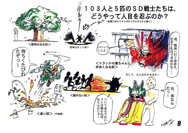 個人的(こじんてき)にはこの4年間(ねんかん)はほかにもいろんな仕事(しごと)にかかわりましたが、「武者○伝」のスタッフはみなが新時代(しんじだい)の武者頑駄無をつくろう!という意気込(いきご)みが薄(うす)まることがなく、気(き)がぬけませんでしたがかなり楽(たの)しめました。