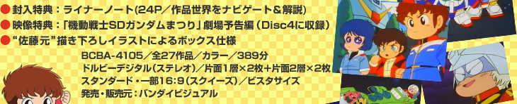 | ※機動戦士SDガンダムMK-IV「SDガンダム猛レース」は欠番タイトルとなっており、本DVDには収録されておりません。 |