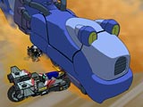 今回はうまくいくと思ったのに、またまたガンダムが現れたザコ。しかもガンダム顔のバイクまでいてビックリザコ。 |