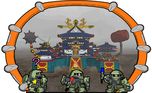 あー、グラップラーグフ様、デストロイヤードム様と一緒に、ビグ・ザムに乗ってっちゃったザコ。 ザコソルジャーも、ザコたちを残してみんなついて行っちゃったザコね…… |