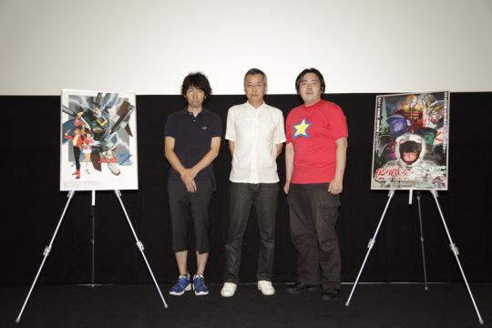 上映に先駆け行われたトークショーは、藤津亮太さんの司会進行のもと、「機動戦士ガンダムUC」ストーリー担当の福井晴敏さん、サンライズ代表取締役社長で「機動戦士ガンダムZZ」プロデューサーの内田健二さん、「機動戦士ガンダムUC」プロデューサー小形尚弘さんが登壇。