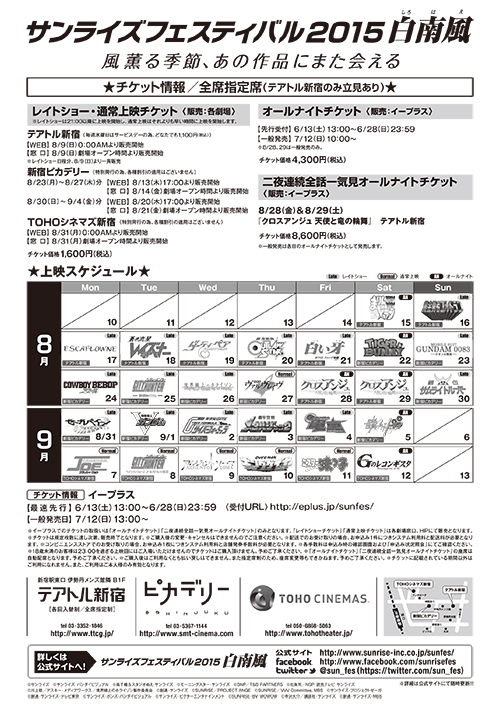 オールナイト上映の先行チケットも明日に控えたサンフェス2015白南風。
